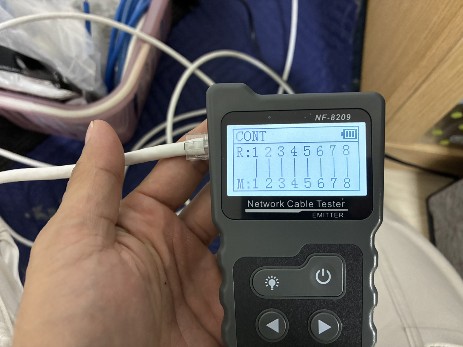 ただ線を繋ぐだけでなく、専用の測定器を用いて速度測定と導通テストまで確実に行います 。オンラインゲームやWeb会議など、極限の「安定性」を求める層からも高い信頼をいただいております
