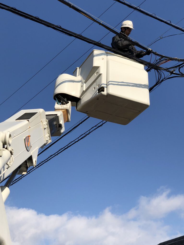 対応内容: 新築・既存宅のLAN配線、情報コンセントの増設、Cat6A規格施工、屋外架空配線など